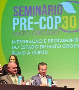 O governador de Mato Grosso, Mauro Mendes, e o senador Wellington Fagundes (PL-MT) estiveram lado a lado nesta quinta-feira (9), em Brasília, durante o Seminário Pré-COP 30, promovido pelo Governo do Estado e pelo Instituto PCI (Produzir, Conservar e Incluir). O evento reuniu autoridades nacionais e internacionais para debater o futuro da agenda ambiental e definir estratégias conjuntas rumo à COP 30, que será realizada de 10 a 21 de novembro, em Belém (PA).